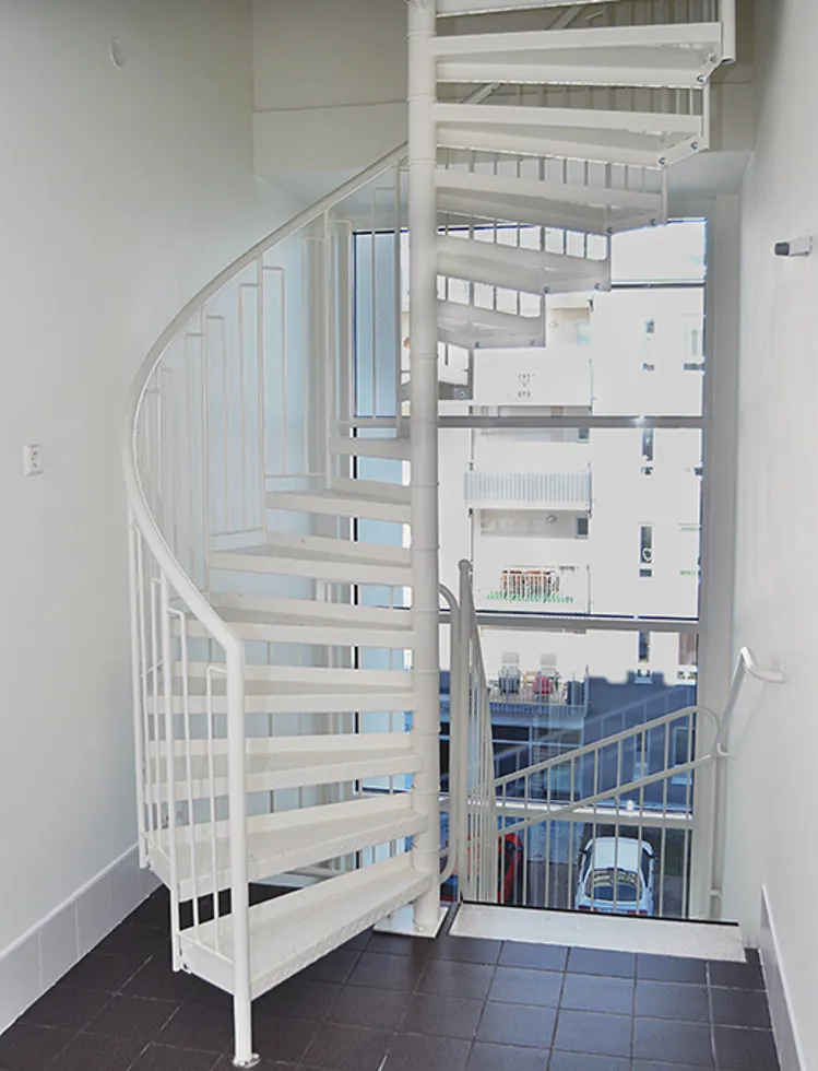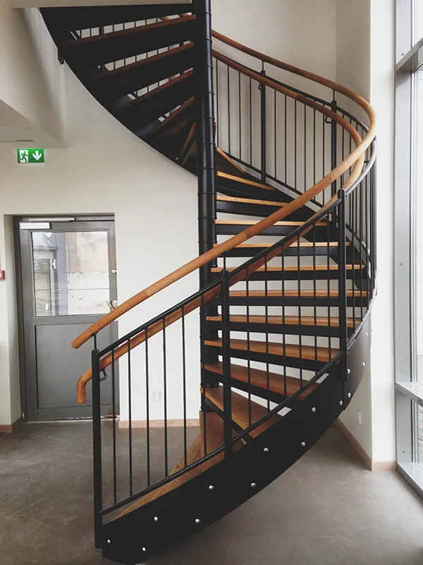 Flobys eleganta spiraltrappor för inomhusbruk används i alla typer av fastigheter, bostäder, offentliga miljöer, kontor och industri. Platsbesparande och säker trappa med en robust stålstomme som är den bärande konstruktionen. Stegen på inomhustrappan tillverkas av trä, beläggning av matta, klinkers, gjutning med betong, eller tårplåt. Floby inomhustrappa fungerar även utmärkt som utrymmningstrappa.